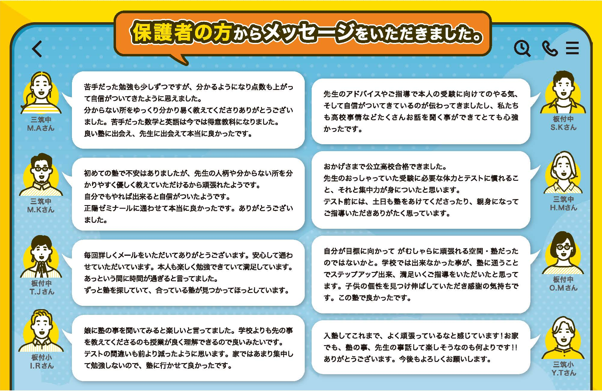 お子様の学習状況をメールで報告し、連携をとっていきます。 お子様とのコミュニケーションや信頼関係と、保護者様との連携がお子様の勉強のやる気、楽しさ、興味をUPさせ、「成績向上」につなげます。