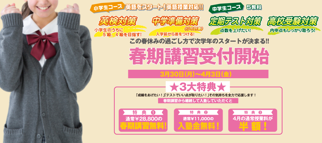入塾金を免除させて頂きます。